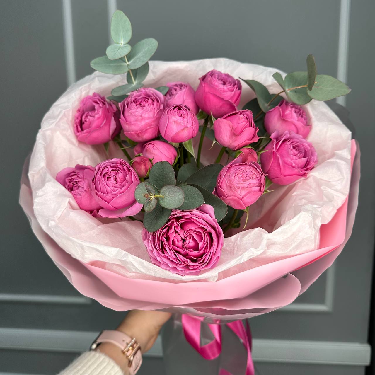 Нежный букет из пионовидных роз. Букет из 3-х кустовых роз.