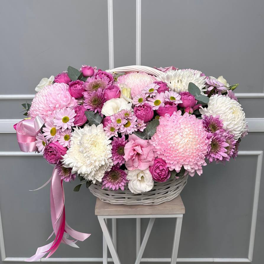 Вау-букет из пионовидных кустовых роз и крупных одноцветных роз