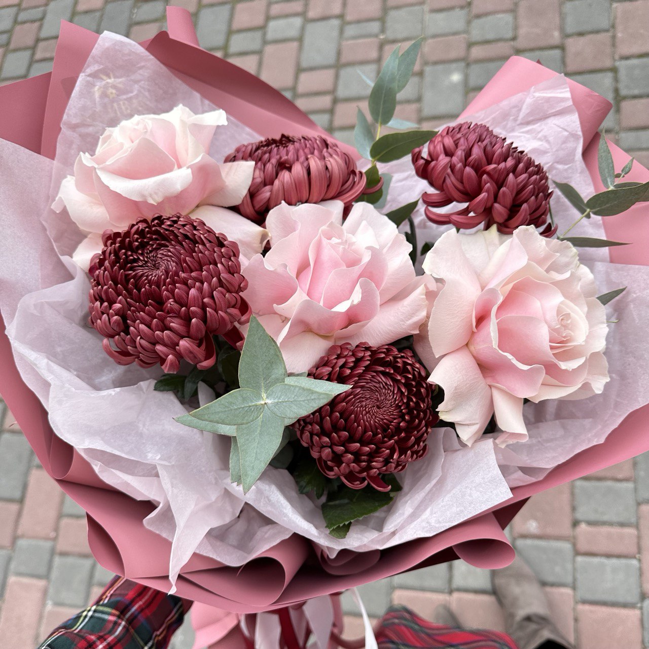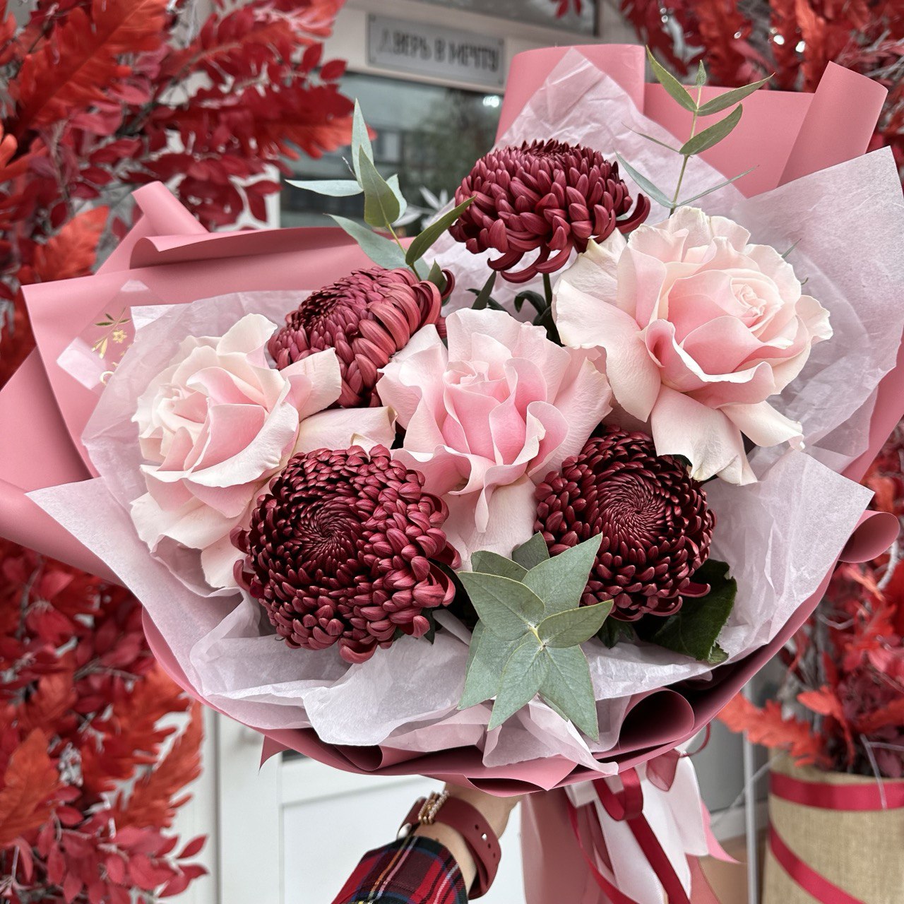 Количество товара Элитный букет французских роз и хризантем Бигуди #401