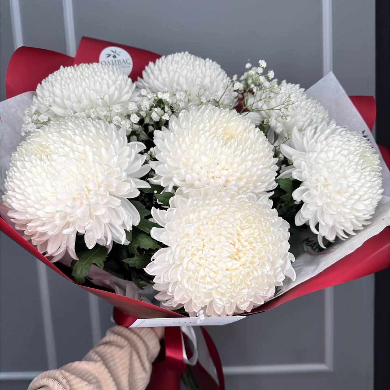 Красивый букет из белых крымских хризантем
