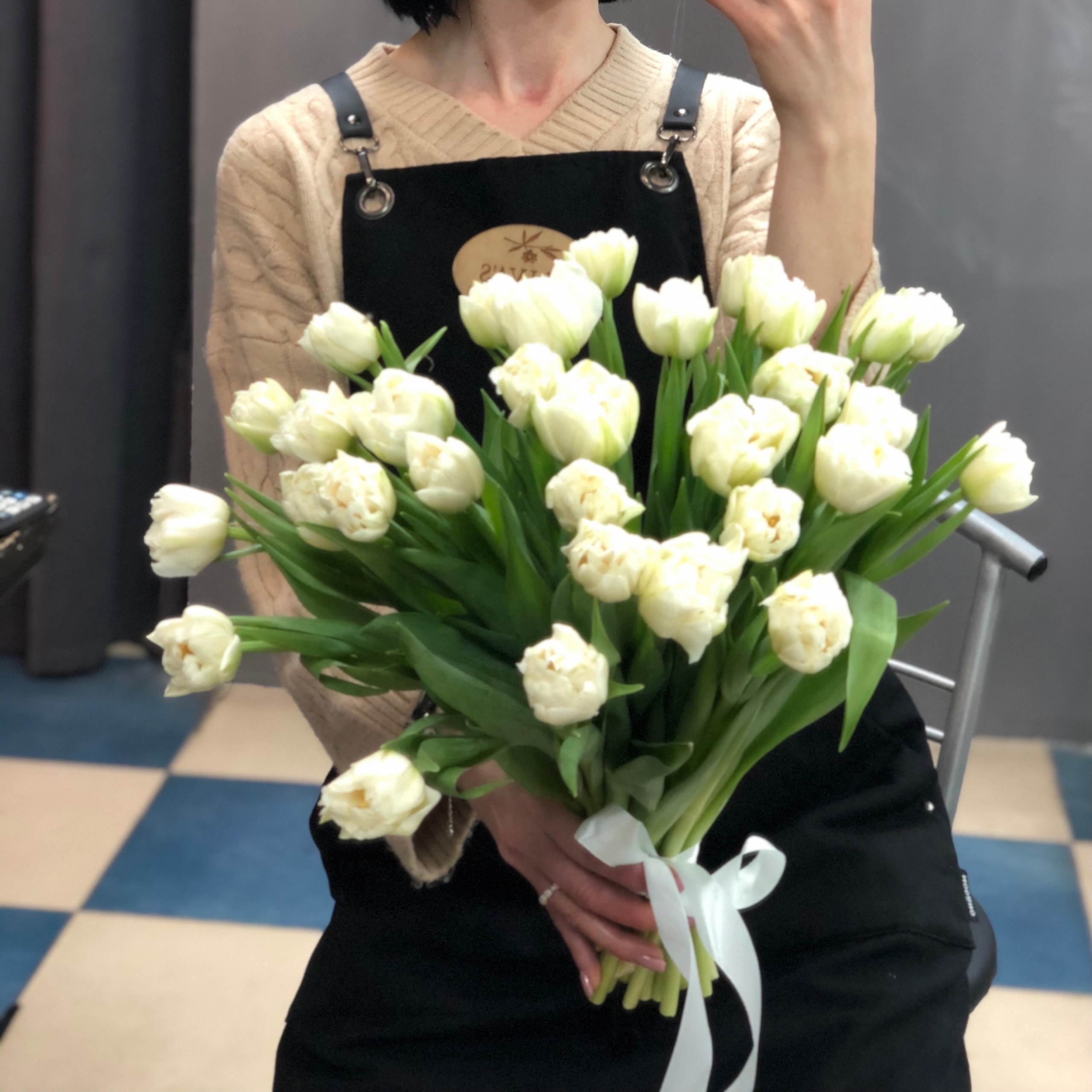 Доступны следующие цвета: белые, розовые, желтые, бордовые тюльпаны.